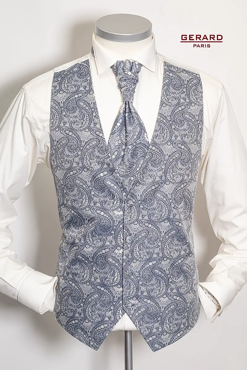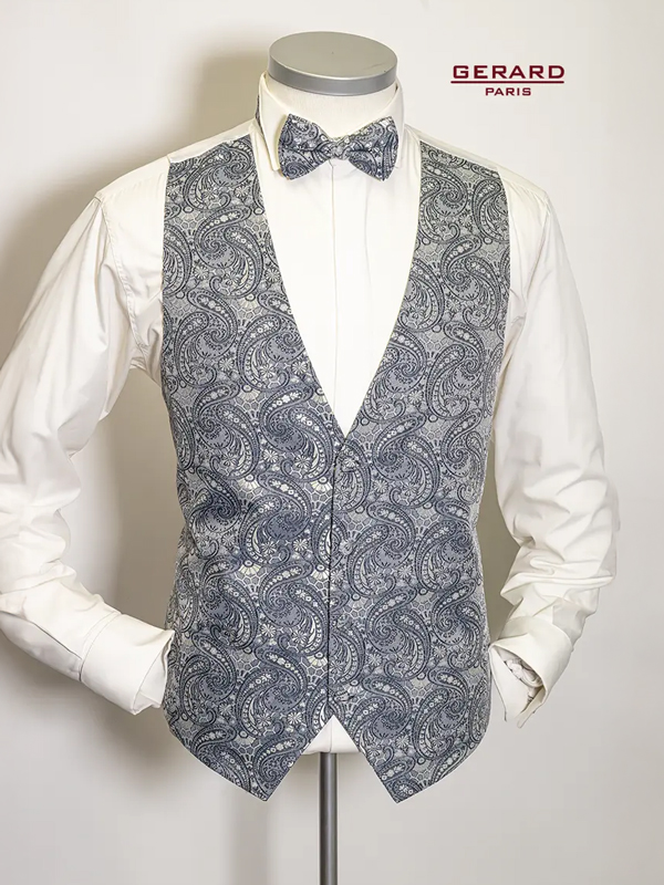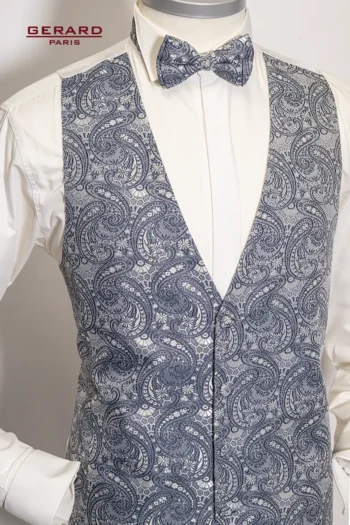 Gerard Paris Blau-Graue Paisley-Hochzeitsweste ALC 6