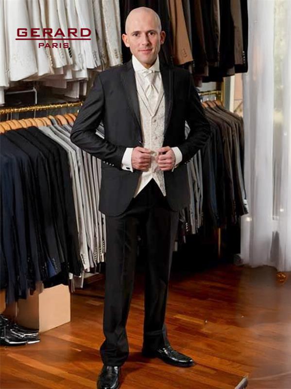 Der moderne Hochzeitsanzug in Schwarz ist ein stilvoller 2-knopfiger Anzug mit Slim Fit Schnitt und kurzer Länge. Erhältlich in den Größen 44 – 58 und in verschiedenen Farben, bietet dieser Anzug eine zeitgemäße Wahl für Ihre Hochzeit.