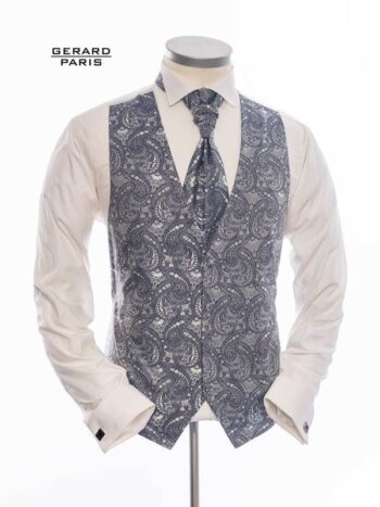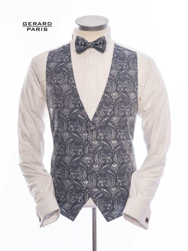 Die Weste besticht durch ein glänzendes Brokatmuster, klassische Frontknopfleiste und eine verstellbare Rückenschnalle – für stilvollen Sitz bei jedem Anlass. Die Fliege im gleichen Stoff sorgt für einen perfekt abgestimmten Look. ✅