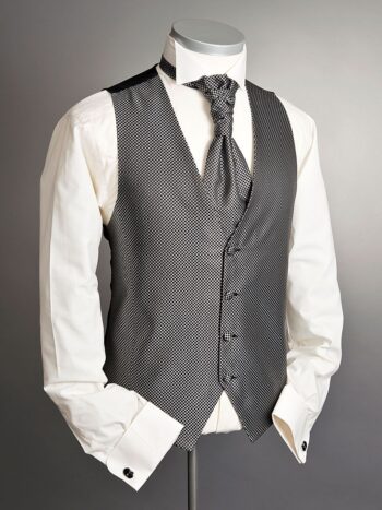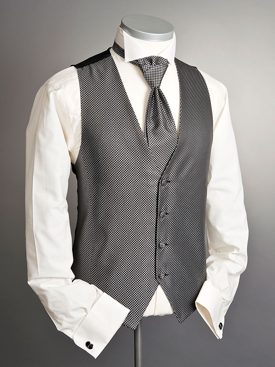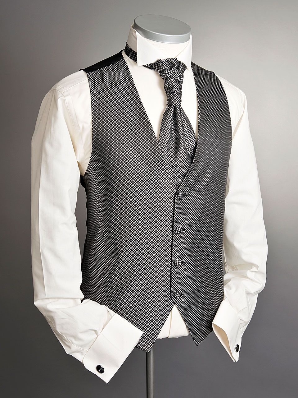Edles Weste-Set mit stilvollem Muster – inklusive Plastron und Einstecktuch. Maßanfertigung in verschiedenen Größen.